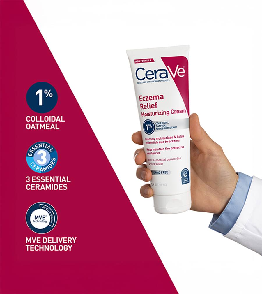 Eczema is a skin condition that causes dry, itchy skin, which can result in flaky skin, bumpy skin, inflamed skin, and irritated skin. That’s why it??s essential to keep your eczema rash (also known as atopic dermatitis) moisturized with a targeted eczema cream. Developed with dermatologists, this intensely moisturizing eczema relief cream instantly soothes and calms itchy, irritated skin, hydrates skin for 48HR and helps maintain skin’s protective barrier. Formulated with 3 skin-identical ceramides, 1% colloidal oatmeal, and shea butter, this gentle, steroid-free, fragrance-free cream for eczema rashes is suitable for sensitive skin and fast-absorbing for comfortable use as needed.