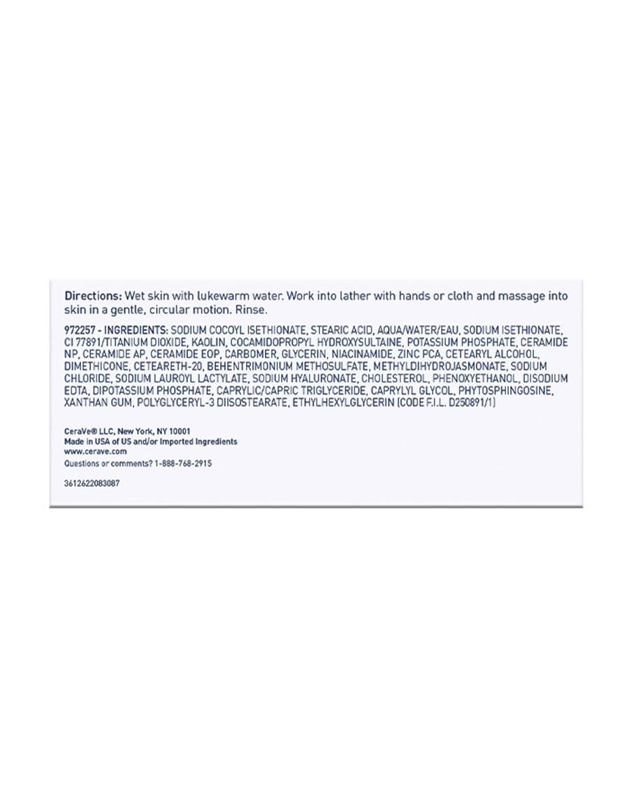 Developed with dermatologists, CeraVe Foaming Cleanser Bar is an effective cleanser for normal to oily skin on the face and body that thoroughly removes dirt and excess oil. With kaolin clay,niacinamide,hyaluronic acidand three essentialceramides, this gentle daily cleansing bar absorbs excess oil, provides the skin with essential moisture that won??t clog pores and helps maintain the skin??s protective barrier. Soap-free, fragrance-free, paraben-free and non-drying, it offers the benefits of a non-comedogenic foam cleanser for oily skin in an easy-to-use bar form??and leaves skin feeling fresh and clean, not tight or dry.