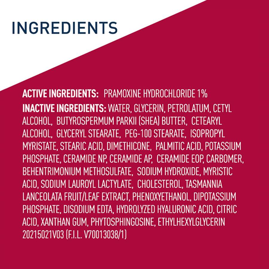 Created for all skin types, CeraVe Itch Relief Moisturizing Cream is formulated with 1% pramoxine hydrochloride to provide fast-acting, long-lasting, temporary relief from itching caused by dry skin, insect bites, sunburn and minor skin irritations. Developed with dermatologists to soothe eczema related itch, our clinically tested, non-comedogenic itch relief cream has been found to provide relief within two minutes??and last for up to eight hours??and 100% of users experienced relief in clinical studies*. Fragrance-free, steroid-free and, our itch relief cream is formulated with 3 essential ceramides that work together to lock in skins moisture and help restore your skin??s protective barrier. MVE technology encapsulates ceramides to ensure efficient delivery within the skin??s barrier and slow release over time. Supporting your protective skin barrier, long after you??ve finish applying. Suitable for all skin types.